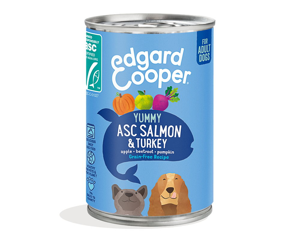 Packed with tasty salmon and turkey, this grain-free recipe is a great source of protein. The salmon is a balanced and digestible protein, packed with Omega 3 and healthy fats. While the turkey provides a succulent, lean protein. This recipe also contains prebiotics to support a healthy gut. As a bonus, we combine the fish and meat with offal (like heart and liver) for an extra helping of nutrition. We blend our recipes with a super-healthy mix of fruit and veg, plus an extra boost of herbs and botanicals. Then we gently steam it to lock in all the flavour and goodness.